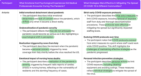 It understands the full context of your conversations - both participant and researcher perspectives - forming a strong foundation for accurate and nuanced analysis.