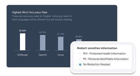 Yes, DoReveal can automatically redacts Protected Health Information (PHI) and Personally Identifiable Information (PII) during transcription. You will see an option to enable PHI/PII redaction in the study settings. You can also find and replace terms across transcripts and analyses to safeguard data privacy.